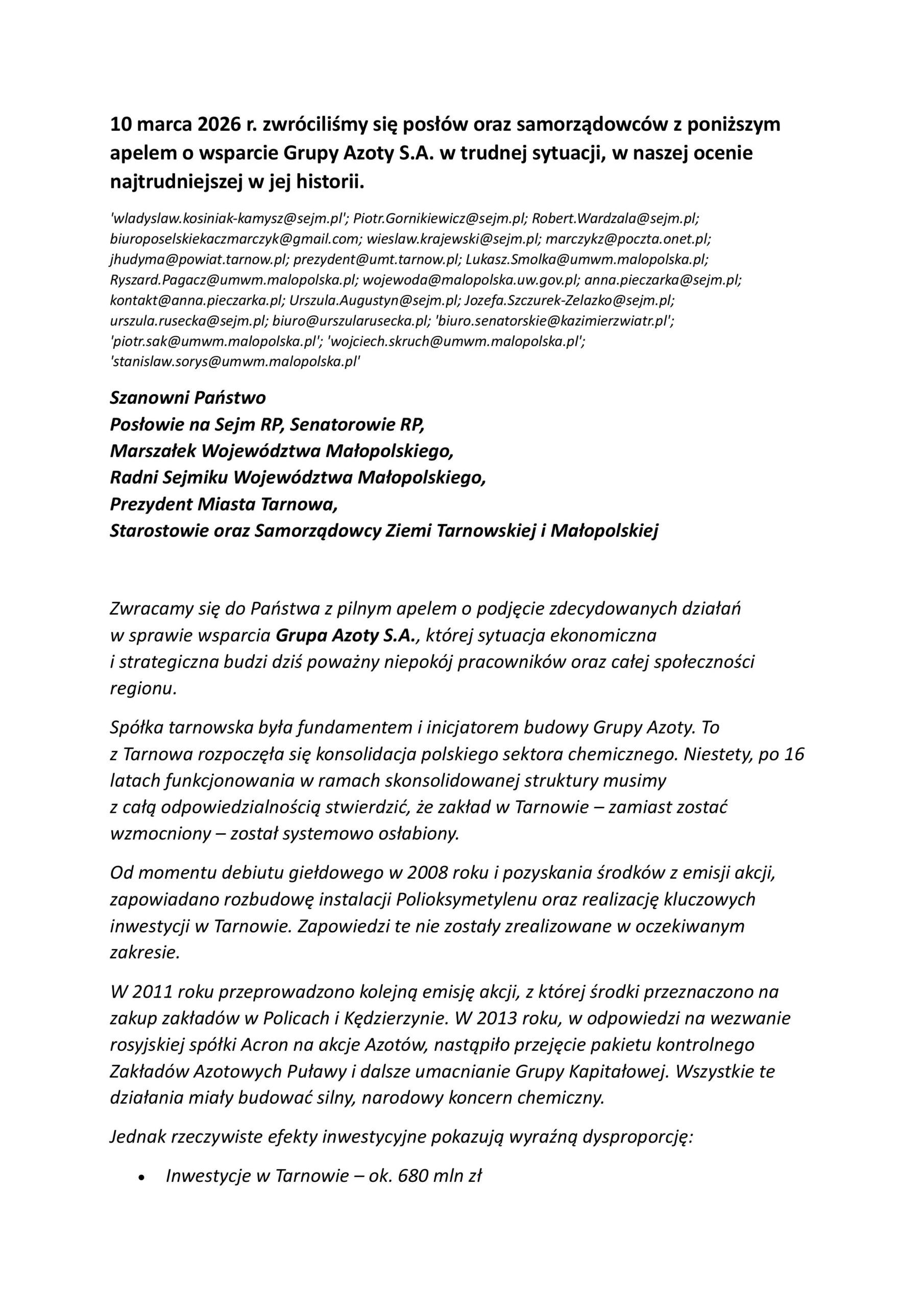 Apel do Parlamentarzystów i Samorządowców!